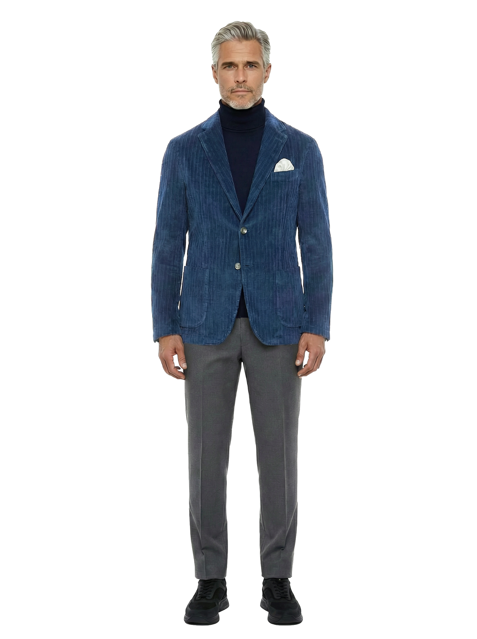 Il tessuto morbido e materico dona profondità al colore e un’eleganza rilassata, perfetta per look casual chic e smart casual.