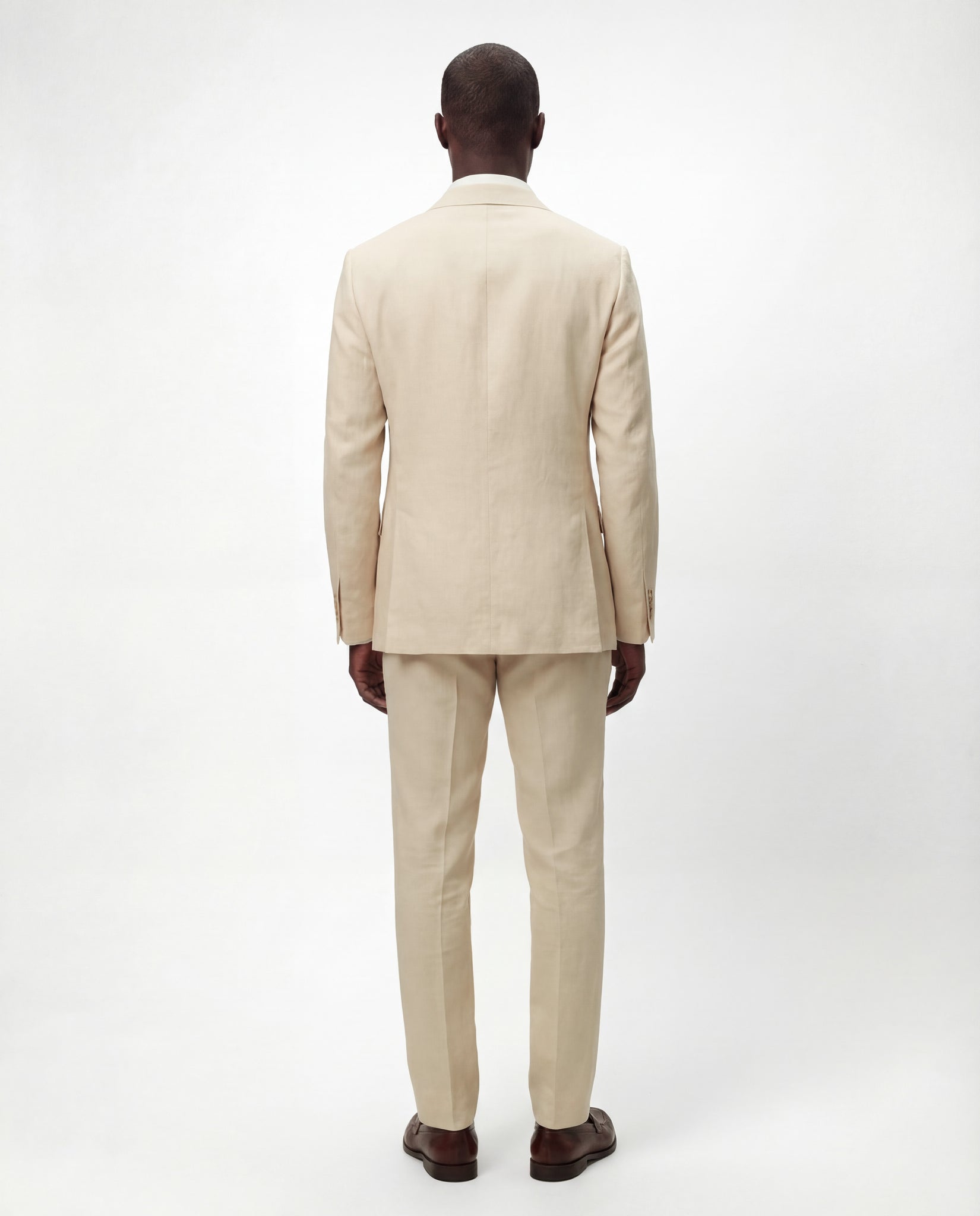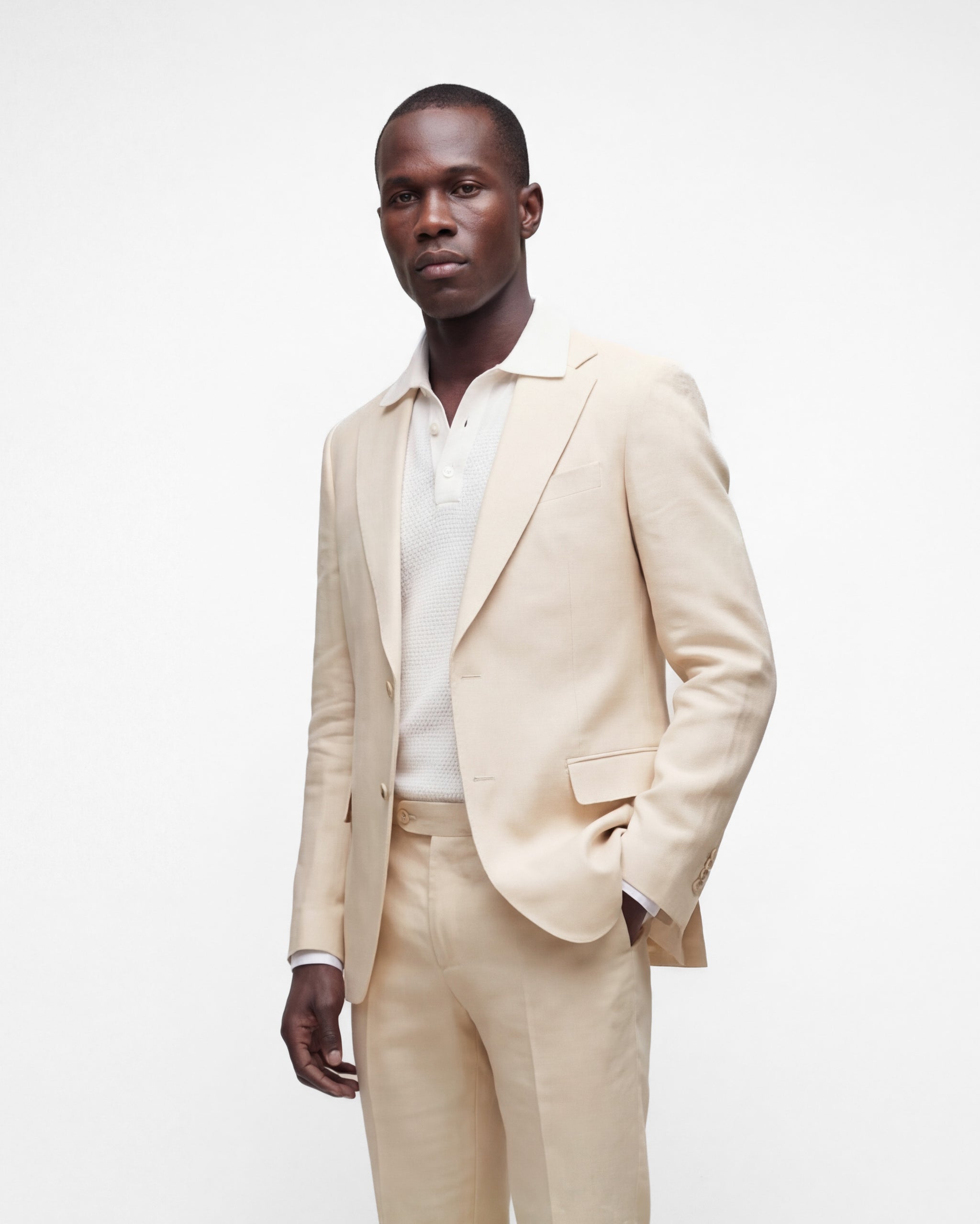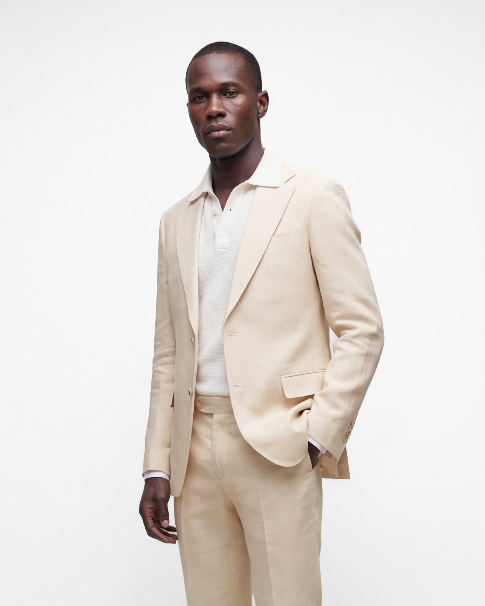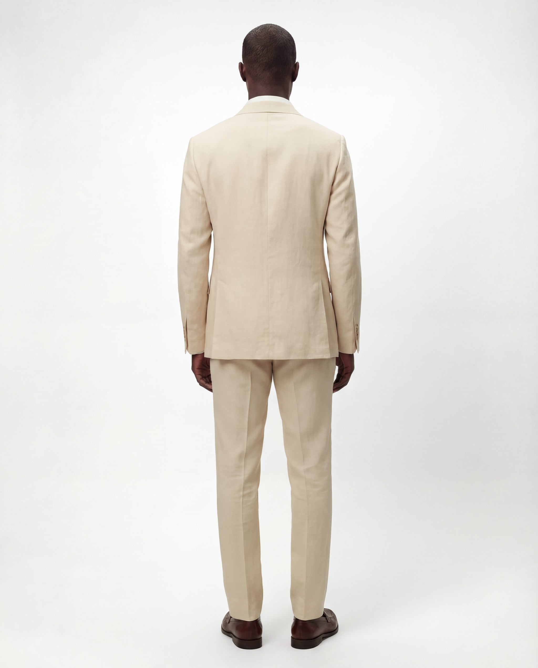 Abito monopetto elegante realizzato in pregiato misto viscosa e lino, perfetto per un look sofisticato e versatile. La giacca semifoderata garantisce comfort e libertà di movimento, ideale per la stagione mite. I pantaloni regular fit senza pinces assicurano una silhouette moderna e slanciata, adatta a molteplici occasioni. Un capo essenziale che combina qualità dei materiali naturali con un design senza tempo, perfetto per chi ricerca eleganza pratica e consapevole.
