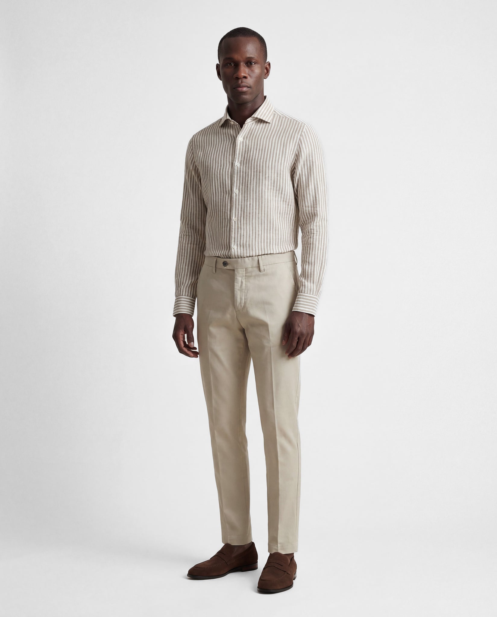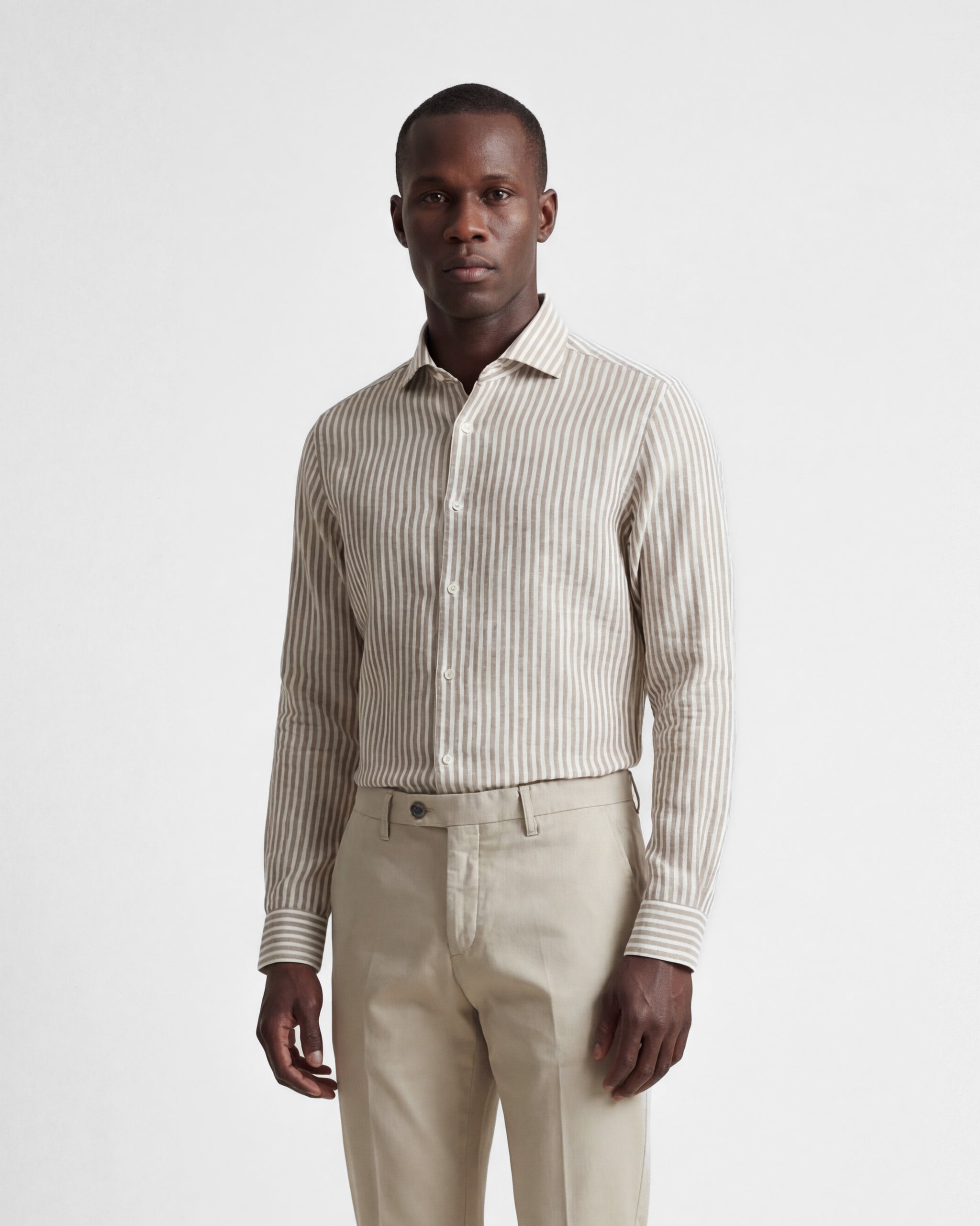 Camicia elegante realizzata in lino e cotone, perfetta per la stagione calda. Il tessuto naturale garantisce traspirabilità e comfort durante tutto il giorno, mentre il motivo a righe conferisce un look classico e versatile. Ideale da indossare sia in occasioni casual che semi-formali, si abbina facilmente con pantaloni chino, jeans o shorts. La lavorazione in lino la rende resistente e facile da mantenere, migliorando con il tempo e gli utilizzi. Una scelta consapevole per chi ricerca qualità, stile e praticità in un'unica soluzione.