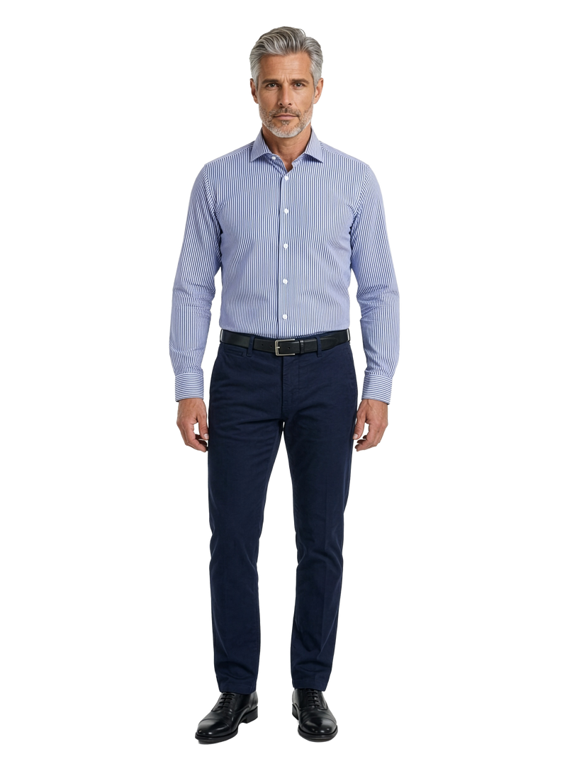 Camicia da uomo mille righe, elegante e raffinata, caratterizzata da sottili righe che donano uno stile classico e senza tempo.