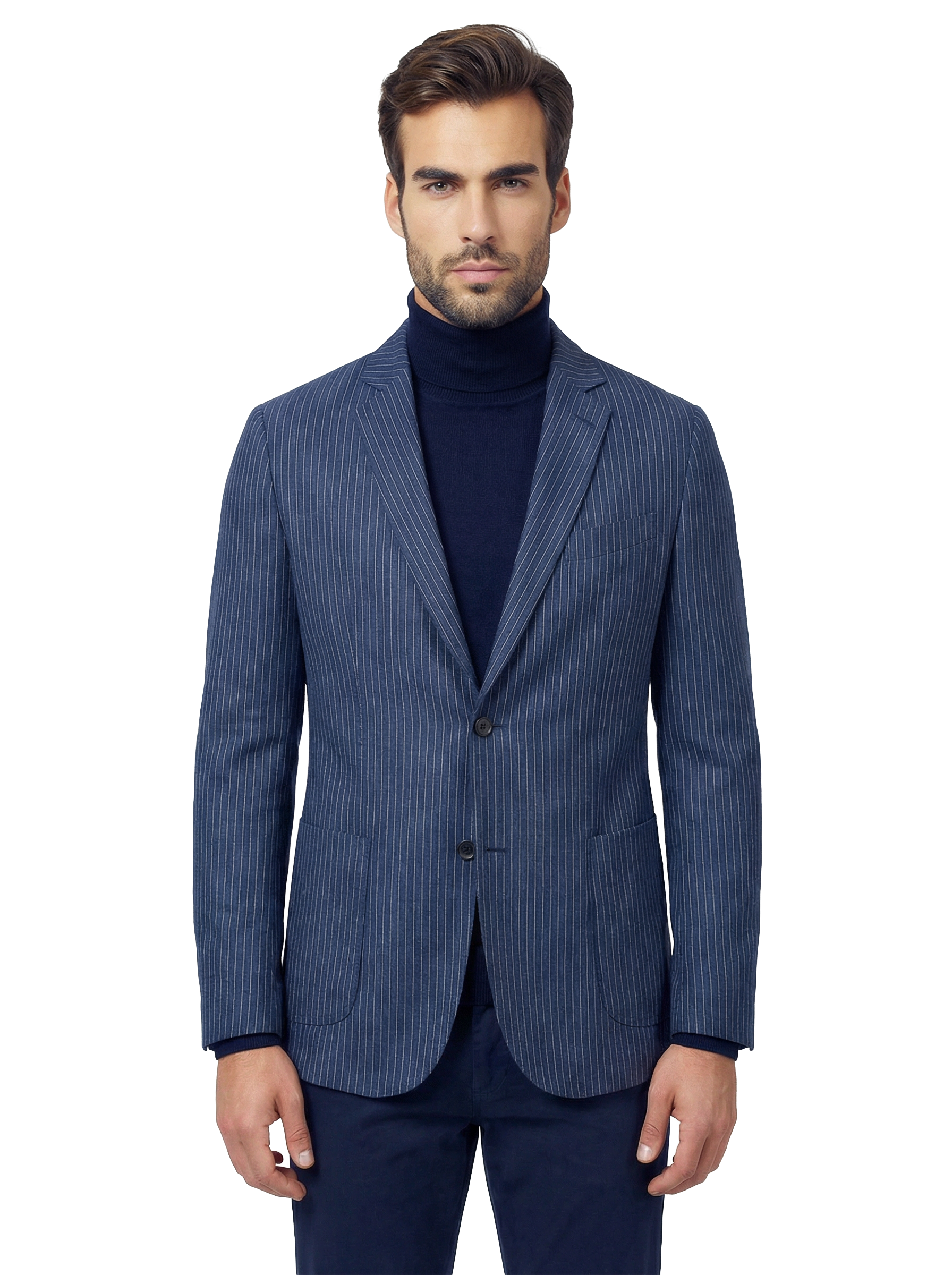 Giacca Profezia ammagliata in tessuto gessato dalla morbida mano lanosa: elegante, calda e versatile.