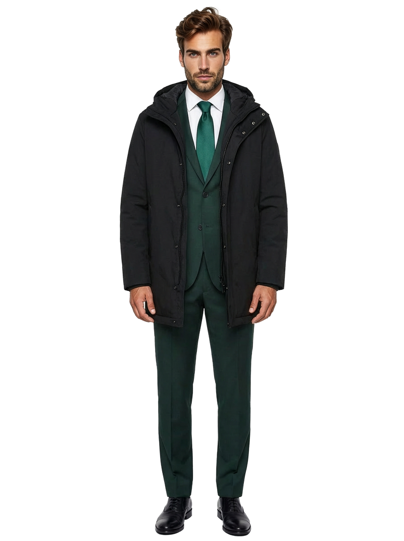 Il design essenziale e moderno garantisce comfort e praticità, mentre la lunghezza assicura una maggior coprenza senza rinunciare al confort grazie all'apertura con doppio cursore.