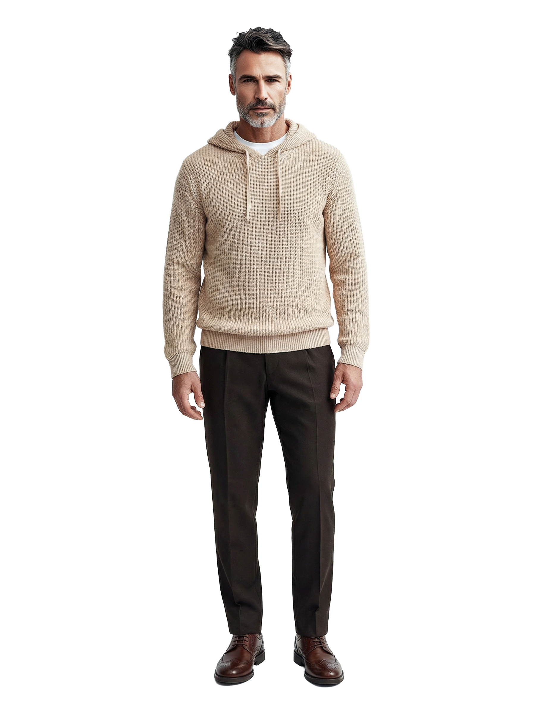 Maglione con cappuccio dal design casual, pensato per offrire comfort e praticità.